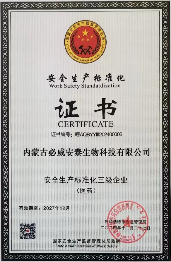 內蒙古必威安泰生物科技有限公司成立于2008年6月,位于呼和浩特市和林格爾乳業開發(fā)區,占地123畝,注冊資本1.25億元。公司專注于生物疫苗研發(fā)生產,是原農業部批準的首家采用細胞懸浮培養(yǎng)技術生產口蹄疫疫苗的企業,擁有兩條7550升德國進口懸浮培養(yǎng)生產線,年產能20億毫升,覆蓋多種動物疫苗。公司被認定為自治區“企業研發(fā)中心"“重點龍頭企業單位”“企業技術中心"和國家"高新技術企業”,“口蹄疫基因標記疫苗”獲全國商業科技進步一等獎。2024年,瑞普生物控股后,公司構建全生命周期質量管控體系,獲多項國際權威認證,包括ISO9001、ISO14001、ISO45001、ISO5001及獸藥GMP、CNAS、GCP、GSP等。